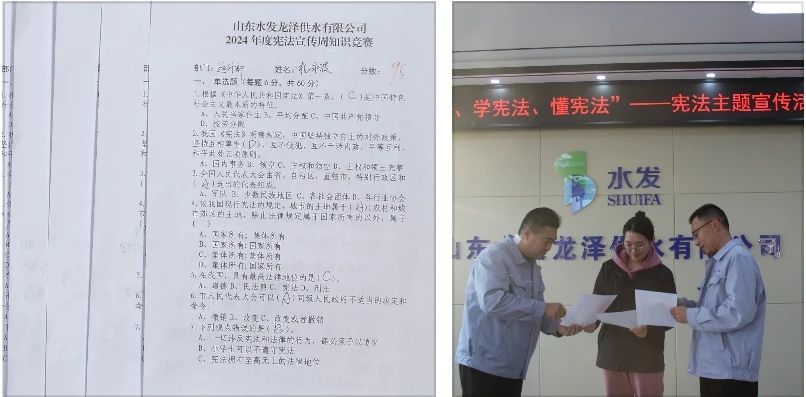 山東水發(fā)龍澤供水有限公司開展“識(shí)憲法、學(xué)憲法、懂憲法”宣傳活動(dòng),活動(dòng)分為普法宣傳和憲法知識(shí)競(jìng)賽兩部分。