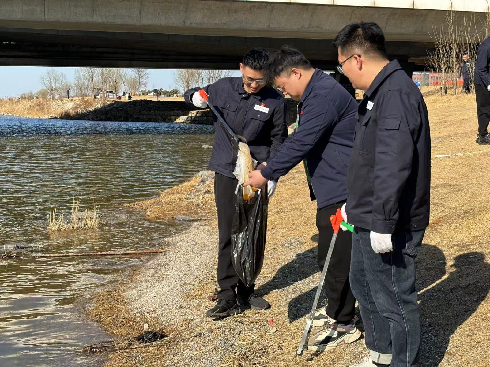隨后,公司30多名志愿者前往白浪河附近開(kāi)展巡河護(hù)河活動(dòng),志愿者們手拿垃圾鉗、垃圾袋等工具,沿白浪河河道清理沿岸垃圾,小到煙頭、廢舊生活垃圾,大到河道水面樹(shù)木殘枝,都一一“收入囊中”,以實(shí)際行動(dòng)傳遞志愿服務(wù)精神,積極營(yíng)造整潔的河道環(huán)境。